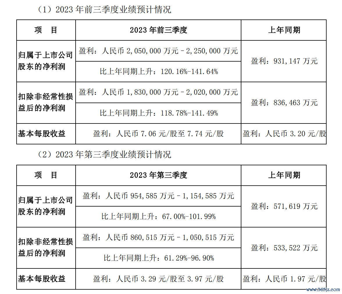10月17日盘后,公布了2023年前三季度业绩预告。不出意外的,在月销量大增的同时,业绩也是突飞猛进,第三季度单季盈利有望破百亿元。