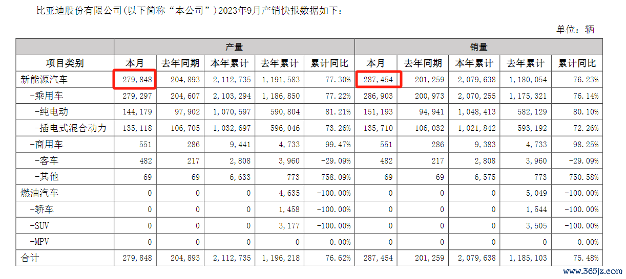 在刚刚过去的9月份,据产销快报,比亚迪新能源汽车的当月产销都接近30万辆。